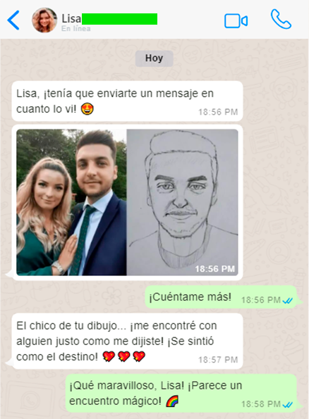 Soy Lisa Aura, una psíquica con un don único que he perfeccionado desde la infancia. Mis habilidades fueron nutridas en una familia con profundas raíces en prácticas espirituales y psíquicas, y he pasado años perfeccionando mi arte. No solo dibujo; me conecto con energías y emociones a un nivel que no es visible al ojo humano. Esta conexión me permite crear una representación de tu alma gemela, no solo en forma física sino en la esencia de su ser.